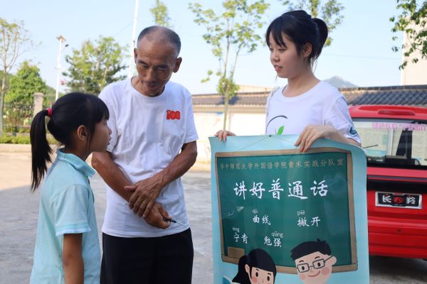 华大青年讯(通讯员 王婧桦 张一慧)为响应“推普助力乡村振兴”号召,7月9日至14日,外国语学院青禾实践队在湖北省黄梅县苦竹乡油铺街村油铺小学,开展普通话教学活动。青禾实践队通过开设普通话培训课程,举办朗读比赛,制作普通话小报等系列活动,为当地推普工作贡献青春力量。