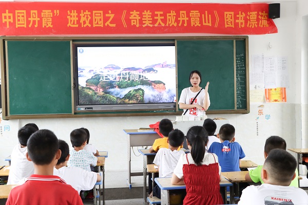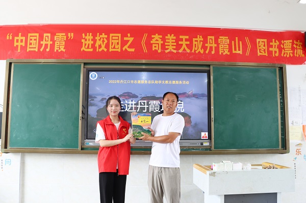 课程最后,黄子浣代表十堰队向丹江口市习家店小学捐赠了一批《奇美天成丹霞山》科普书籍,希望学生能够通过文字与图片,感受我国大好河山的无限魅力,拉近个人与自然的距离,感受自然,热爱自然、保护自然。