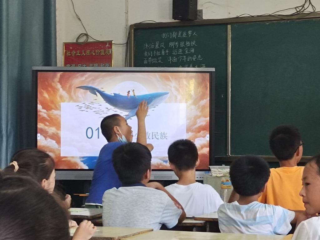 中华56个民族在辽阔而富饶的土地上劳动、生息、繁衍,绽放出璀璨多彩的文明之花。队员马一首先对中华民族的组成、分布状况等做了简单介绍,并从中挑选数个民族,从特色节日、风俗习惯、语言服饰、饮食文化等多个角度进行了详细介绍。为营造轻松活跃的课堂氛围,老师设计了蒙古舞才艺展示环节,带领同学们在欢歌笑语中领略民族文化魅力。课堂不仅展示了各民族的灿烂文化,更激发了同学们维护民族团结的责任感和使命感。