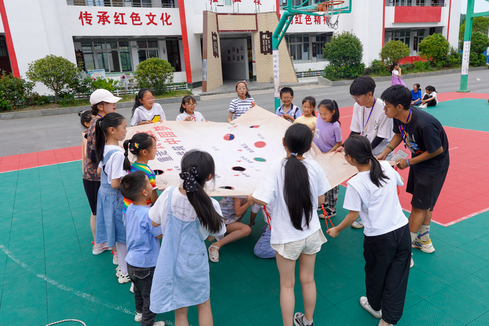 华大青年讯(通讯员 赵恒健 赵骥雯 陈茜屿 万义辉)为进一步展现夏令营实践成果,在活动中培养乡村儿童的合作意识与乐观心态,7月15日,雏鹰实践队在湖北省恩施州建始县官店镇红军小学举办夏令营趣味运动会。雏鹰实践队全体队员、红军小学200余名学生参加活动。