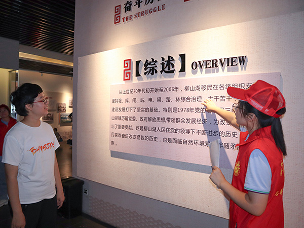主会场活动结束后,游客陆续前往位于易家堤村的赤壁市移民文化陈列馆。实践队队员赵海林作为陈列馆讲解员之一,为游客讲解了柳山湖镇的移民历史与文化,在讲解中展示青年的风采。实践队指导老师姜春勇表示:“流利的讲解离不开充分的准备,在相关负责领导决定由实践队来负责陈列馆讲解后,我们便组织了全体队员学习柳山湖镇的移民历史,同时进行试讲,最终挑选出一位队员代表负责讲解工作。”