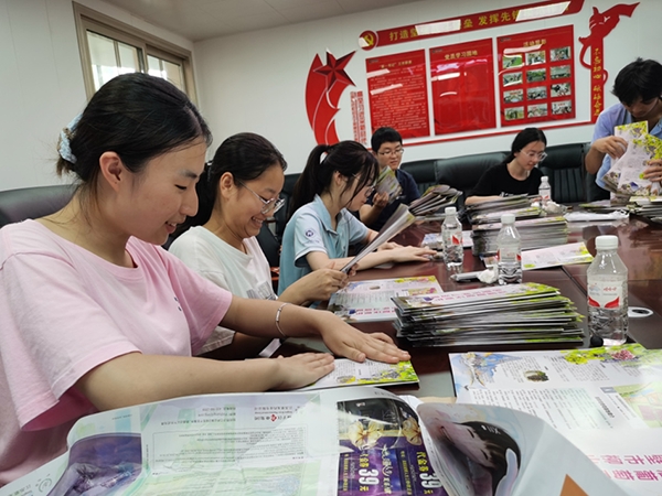 为确保葡萄节采摘节活动的顺利开展,实践队全体队员于7月15日前往柳山湖镇易家堤村参与活动筹备工作,在主会场、展销区、陈列馆等地熟悉环境,分为多个小组开展游客引导、物资配送、疫情防控等筹备工作。在完成基本的准备工作后,实践队队员集中到易家堤村村委会准备首届葡萄采摘节宣传彩页。队员们一边交流活动筹备情况,一边帮助现场工作人员折叠宣传彩页。