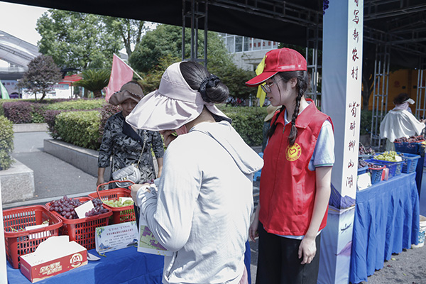 华大青年讯(通讯员 赵海林)“葡”写新农村,“萄”醉柳山湖。7月16日上午,为深入学习习近平新时代中国特色社会主义思想,在观察实践中学党史、强信念、跟党走,努力成为将人生价值汇入时代洪流的新时代青年,华中师范大学物理科学与技术学院党员国情学习与实践队(以下简称“实践队”)在赤壁市柳山湖镇首届葡萄采摘节现场开展助农实践活动。近200名游客在实践队员的引导下体验葡萄采摘乐趣,分享丰收喜悦,助力柳山湖镇农村经济发展。
