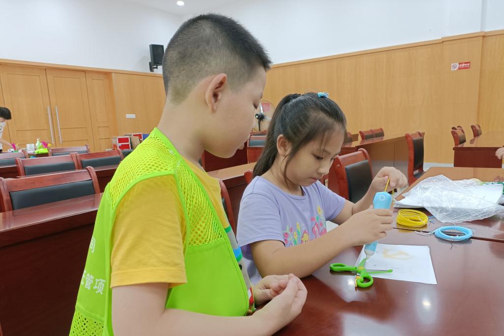 华大青年讯(通讯员 熊锦玟)7月18日下午,计算机学院创客义教暨党史宣讲暑期实践队前往建和青少年空间开展3D打印笔义教活动。本次活动旨在通过3D打印课程和党史宣讲课程培养中小学生的创造力、激发中小学生的爱国热情。本次活动由华中师范大学计算机学院、“三四三”机器人文化科技公司和机器人协会联合开展,实践队队员陈含丽子担任主讲老师,实践队队员熊锦玟担任助教。