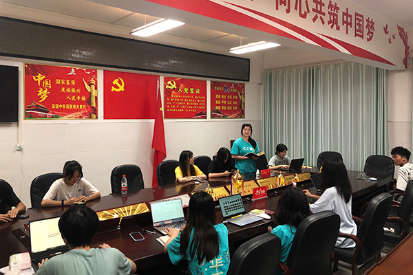7月19日晚,萤火服务队举行郧阳革命烈士陵园寻访活动总结大会,整理参观和采访所得的录音、照片、视频材料,分享此次寻访活动的心得体会。在交流学习中,队员们对宣扬红色精神有了进一步的领悟和认知。服务队成员包薪悦说到:“本次支教中我开设的爱国主义教育这门课,讲述了烈士陵园中革命先辈的事迹。我想将这些故事讲给孩子们听,希望他们能铭记历史,缅怀烈士。”