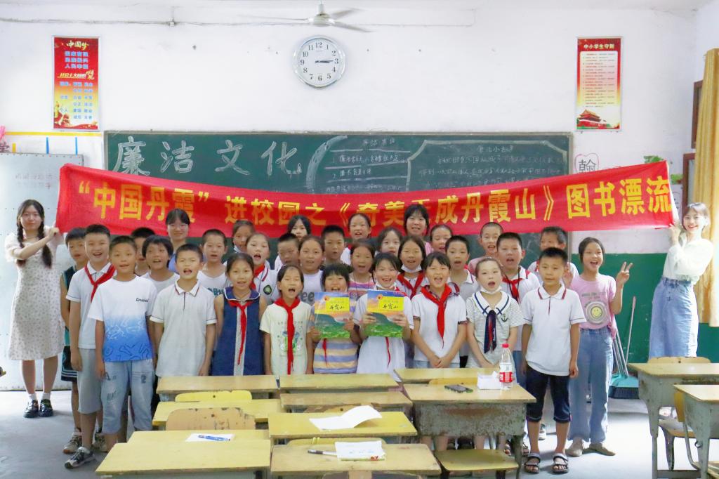 课程最后,柳向婷代表郧阳队向茶店镇中心小学捐赠了一批《奇美天成丹霞山》科普书籍,希望同学们能够合理、有效地利用书籍资源,通过文字介绍和图片展示领略祖国的自然风光,树立亲近自然、保护自然的意识。