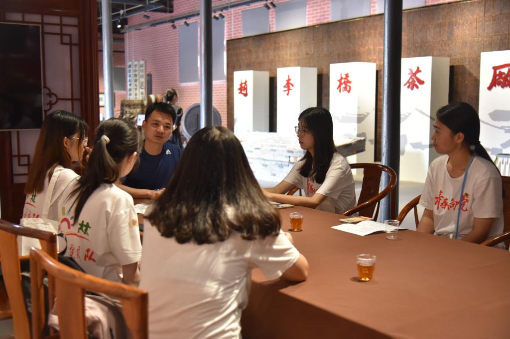 了解完青砖茶的“前世”后,追光实践队志愿者们与茶厂电商部经理舒超进行面对面谈话,继续探索其发展现状与未来机遇。