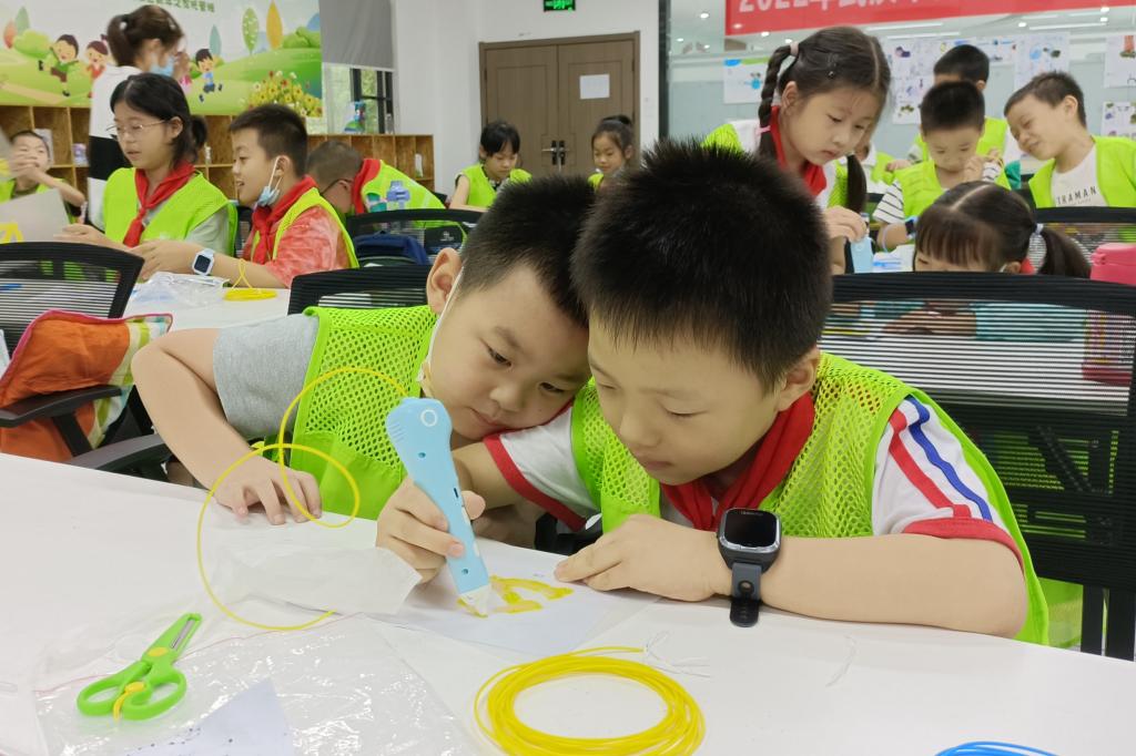 完成“美食卡牌”创客课程的首次讲授后,7月18日至7月22日,蒲丽娟前往4个不同的青少年空间进行该主题的义教活动,拓展青少年知识的广度,延伸他们思维的深度。与此同时,实践队继续开展磁力片搭建和3D打印笔打印等创客课程。