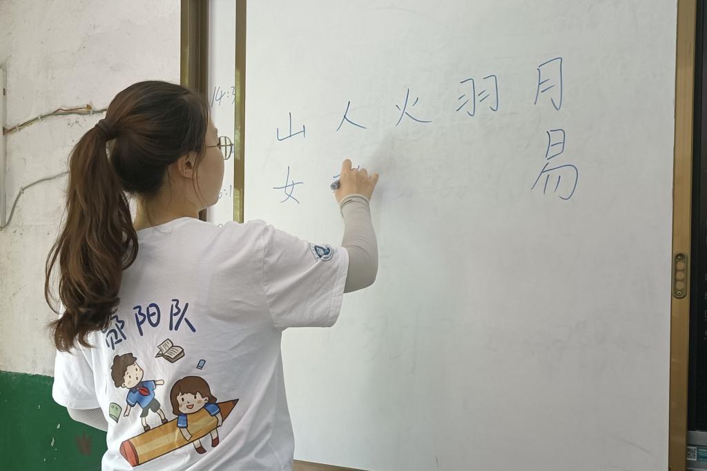 易诗睿课后谈道:“我上这堂课其实也是一种文化的传承。我从我的语文老师那里学来知识,又以语文老师的身份,把这古老的汉字文化传递给这些学生。希望他们也能尽自己所能,传承文化。”文学院心火郧阳队的老师发扬中华民族优秀传统文化,激发学生兴趣,培养文化自觉和文化自信。