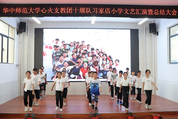 华大青年讯(通讯员 龚若楹)为发展学生的文艺特长,展现夏令营活动成果,7月23日上午,华中师范大学心火支教团十堰队(以下简称“十堰队”)在丹江口市习家店镇习家店小学阶梯教室举办文艺汇演暨总结大会。习家店小学校长张长伟、副校长赵玉芳、工会主席刘世锋、后勤主任毛国政出席本次活动,十堰队全体队员、夏令营全体营员参与本次活动。
