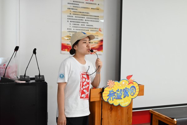 在白霓支教队队长苏盈的引导下,所有学生围成一个圆圈,进行“正说反做”的热身游戏,即所做内容需与主持人的指令相反,未完成者需进行才艺表演。在庞美微同学的古诗朗诵与王优同学的唱歌表演之后,现场气氛活跃了起来。