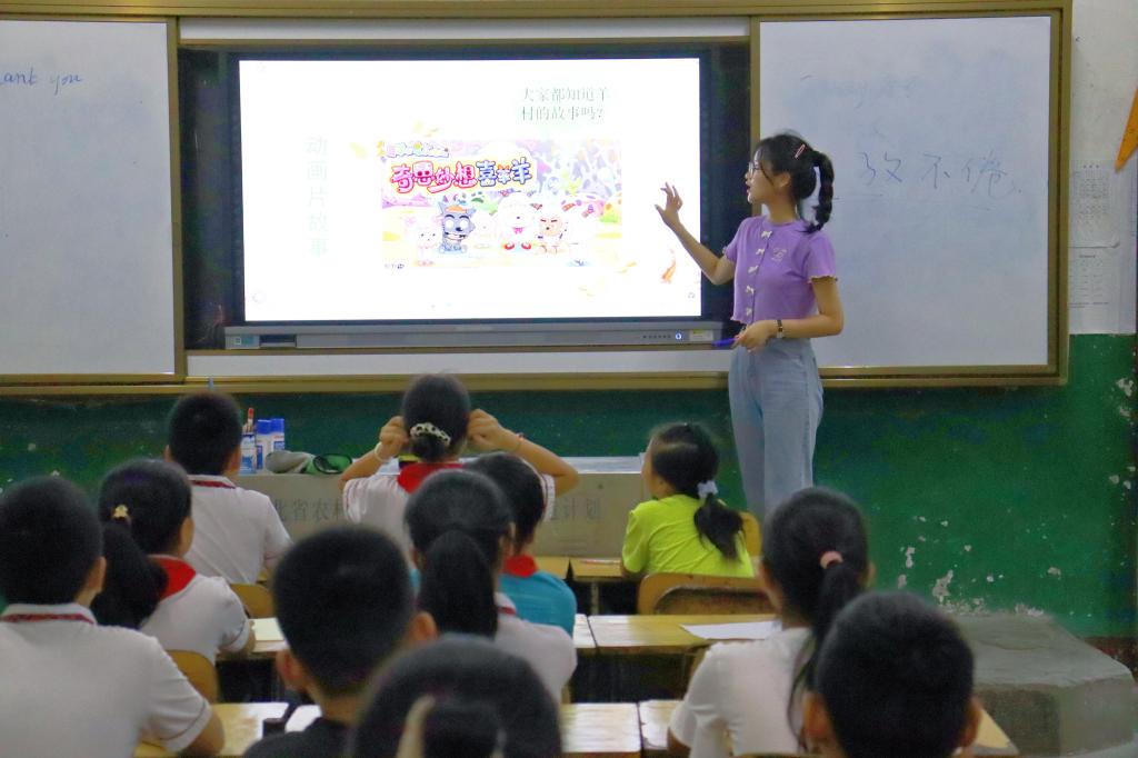 郧阳队成员张孜涵通过引导学生口头讲述所做过的梦引出想象的概念,并介绍了想象力在日常生活中的表现形式。她指出想象在写作、绘画、发明创造中的重要性,带领学生进入对想象的学习和探讨中。借由《爱丽丝梦游仙境》的动画片段,张孜涵向学生介绍了卡罗尔笔下爱丽丝的梦境,引发学生们对自己曾经做过的梦境的回忆。