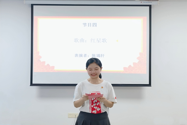 在张庆鑫的主持下,全体老师、学生起立合唱国歌,拉开了本次红色故事汇演的序幕。“即从巴峡穿巫峡,便下襄阳向洛阳。”一首《闻官军收河南河北》抒发出了学生坚定的爱国之情;五步拳和初级拳的表演展现出了武术的魅力以及流淌在学生血脉中的红色基因。
