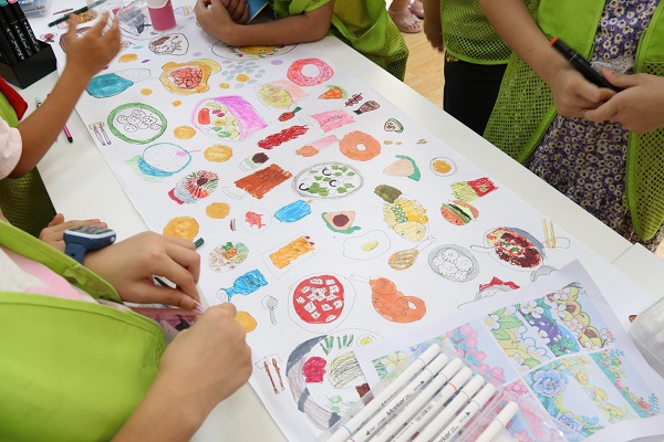 在活动现场,学生们扶着长卷,用五彩的画笔描绘了蔡甸丰富的美食、美丽的风景、便捷的生活,也在画作中展现出国家与家乡同频共振的时代潮流。完成画作后,白鹤泉青少年空间的学生左潇奕分享道:“我负责画的部分是家乡美食,在绘画中我真切地感受到,我的家乡有数不尽的美食,并且都是独一无二的。我和小伙伴们画了20多种特色食物,看着这些画,我觉得很有成就感,也很为家乡自豪。”