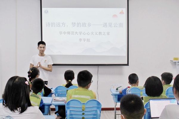 华大青年讯(通讯员 李宇航 席一鸣)为帮助武汉市蔡甸区青少年度过一个“安全、健康、有益、文明、充实、愉快”的暑假,华中师范大学心火支教团武汉队(以下简称“武汉队”)队员陈慧宇、陶馨怡、李竞择和李宇航于7月11日到达武汉市蔡甸区蔡甸街道正街社区青少年空间,开展了为期两周的支教活动。