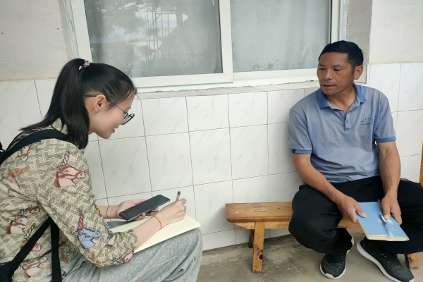 实践队来到石龙村村委会,与村支书张四春进行交流。张四春向实践队介绍了石龙村的白曲保护与传承现状。据悉,石龙村现有5位省级非遗传承人,4位州级非遗传承人,23位县级非遗传承人,其中白曲传承人占一半以上。