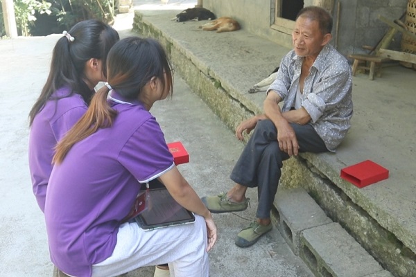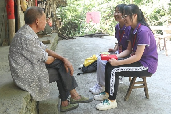 数统实践队队员选取了“红色文化”、“不忘初心”等多个话题,明确分工,分头行动,开展线上线下相结合的党员访谈工作。其中,数统实践队四组对重庆市酉阳南腰界镇“光荣在党五十年”的老党员陆秀成进行了面对面访谈。陆秀成原为沈阳军队的一名军人,退伍后又返回南界村操办实业,助力家乡建设。陆秀成从自己的入党初心谈起,向四组队员们讲述了自己从军几十年的经历。从部队当兵入伍,到成为党员,陆秀成表示中国共产党人的初心和使命,就是为中国人民谋幸福,为中华民族谋复兴,这也一直是他的的坚定信仰。