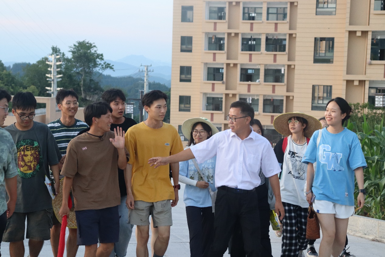 范重庆表扬队员们:“我们起早床、摸黑夜,我们跟蚊子做斗争,跟炎热做斗争,共同绘就美丽乡村。”他结合自身驻村经历,讲述多年来乡村建设变化,激励同学们:“要珍惜时光,在当地多做探讨,多做调研。”