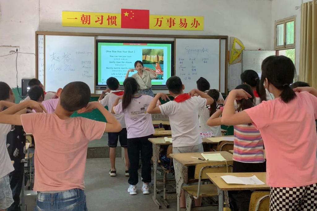 赵榕带领学生们学唱《Row Row Row Your Boat》
