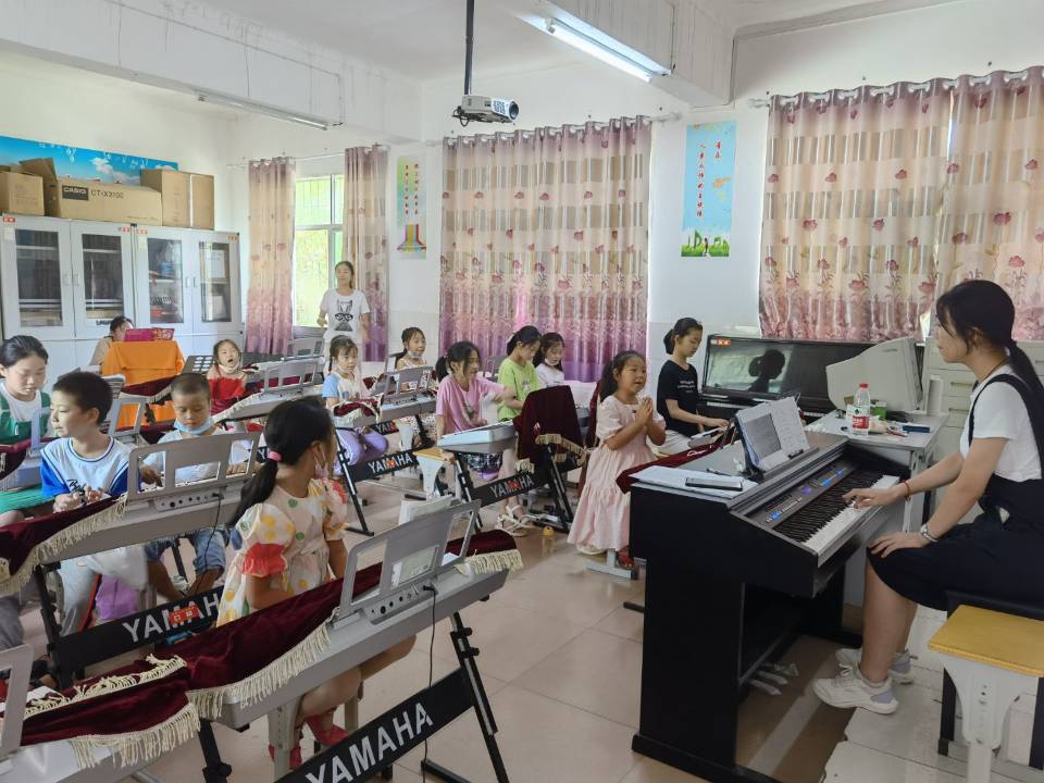 在十五天课程中,老师们投入教学、寓教于乐,同学们认真练习。教学从简谱、指法等基本内容入手。同学们逐渐能掌握简单的练习曲,到最后能演奏《我和你》《婚誓》《小星星》《听我说谢谢你》《最亲的人》等歌曲。不同年龄段、不同基础的同学们在学习中不断进步。在汇报演出中,葫芦丝班与电子琴班联动,带来了乐器演奏串烧,节目精彩纷呈。
