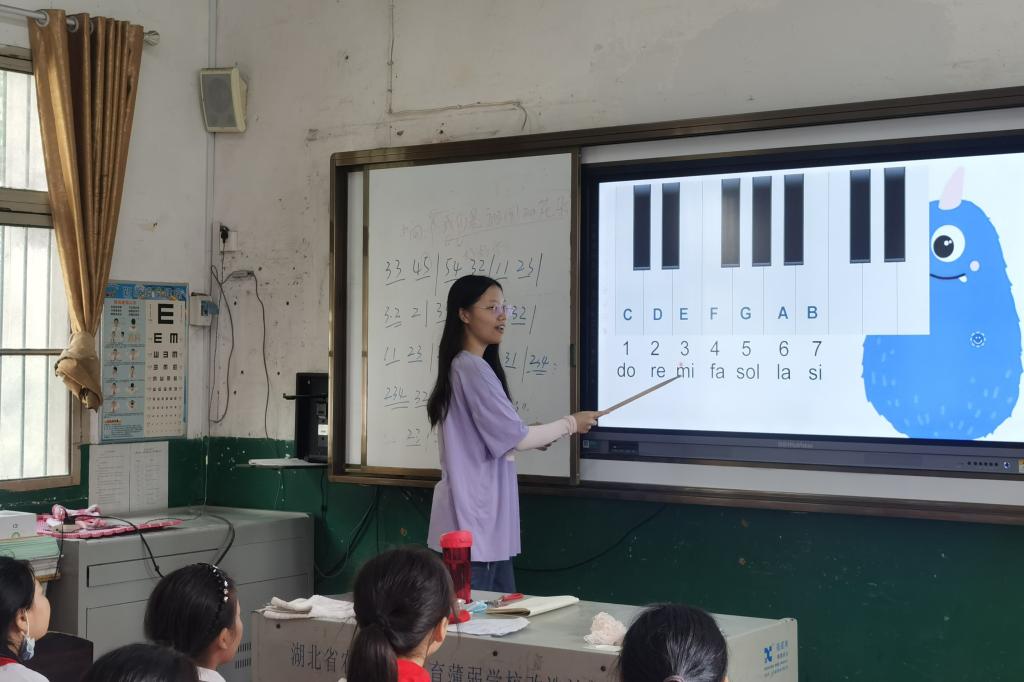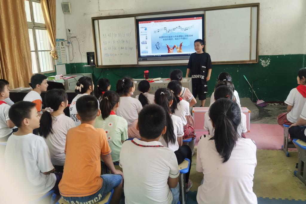 华大青年讯(通讯员 王傢淇 张珺洁)为提高小学生音乐素养,推动青少年全面发展,培养学生的审美情趣,实现美育的目标,8月2日,华中师范大学心火郧阳队(以下简称“郧阳队”)在湖北省十堰市郧阳区茶店镇中心小学开展“打开音乐之门”主题音乐精品课程。本系列课程由支教队队员王傢淇主讲。
