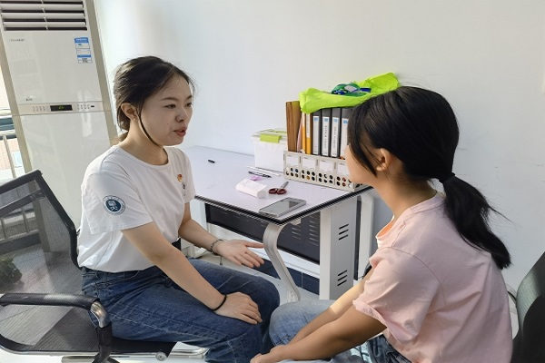 在龙王庙社区中,武汉队队员陈诺、李雪菲、李宇航与龙王庙青少年空间的家长和学生进行了访谈。在面对面交流的过程中,龙王庙青少年空间学生常越(化名)母亲对社区和武汉队开展的暑期托管班表示认可,她说道:“我平常工作比较忙,有了线下托管之后,我可以在假期把孩子送到青少年空间,一整天都轻松多了。孩子回家之后也经常跟我说很喜欢你们开展的活动和课程,能够血多很多有用的知识。”同时常越母亲也提到:“虽然线上云托管平台有很多精彩有趣的课程,但也存在一些问题。比如孩子在线上听课时,长时间使用电子设备造成视力损伤;父母不在家时,孩子没有电子设备,不能按时参与线上托管活动等。”