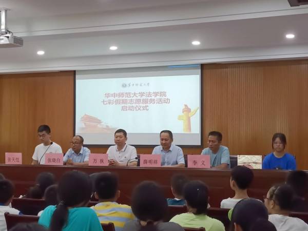 华大青年讯(通讯员 彭向宾 李彩雲)8月4日上午,华中师范大学法学院七彩假期志愿服务活动启动仪式在荆州市江陵县资市镇初级中学举行。资市镇初级中学书记、校长薛明祥、副校长李义、党支部委员张晓白、华中师范大学法学院党委副书记万枞出席本次活动。青春支教队由来自法学院、数学与统计学学院、教育学院、城市与环境科学学院、体育学院、音乐学院等17名队员组成。本次启动仪式由杨睿主持。