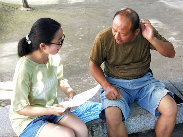 同时,实践队队员深入村庄走访每家每户,向村民分发调研问卷,围绕当地生态文明建设现状进行详细的访谈。通过访谈,实践队队员了解到在政府政策的大力扶持下,各村庄普遍修了水泥路,建了卫生公厕、健身设施、太阳能路灯等,但基础设施后续养护制度与措施缺失等问题仍需解决。