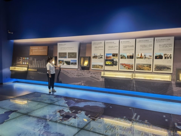 1978年底,党的十一届三中全会作出实现改革开放的伟大决策后,我国海运业迎来了高速发展的阶段。实践队成员认真观看图像资料,显示屏中的现代化港口图像展示着上海港、宁波舟山港等各大海港的吞吐量,体现了港口行政管理体系的变迁沿革,彰显着中华民族建设海洋强国、港口强国的决心与能力。