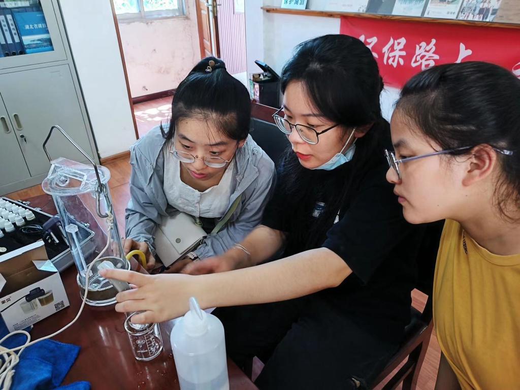 上午,实践队来到武汉绿色江城环保服务中心,在项目助理樊心怡的指导下,团队成员共同了解并学习了水质检测仪器的使用,为水质检测方法的演示、指导学生们使用仪器积累经验。双方共同探讨了“新时代环保小先生”实践方案的可行性,武汉绿色江城环保服务中心将为团队接下来进行的“新时代环保小先生”线下活动提供技术支持。