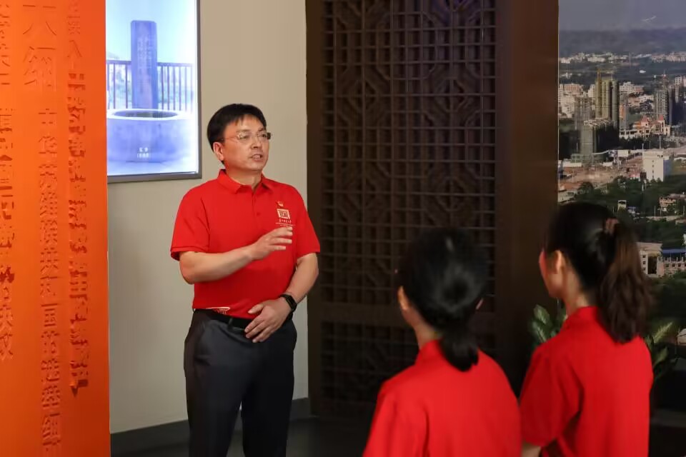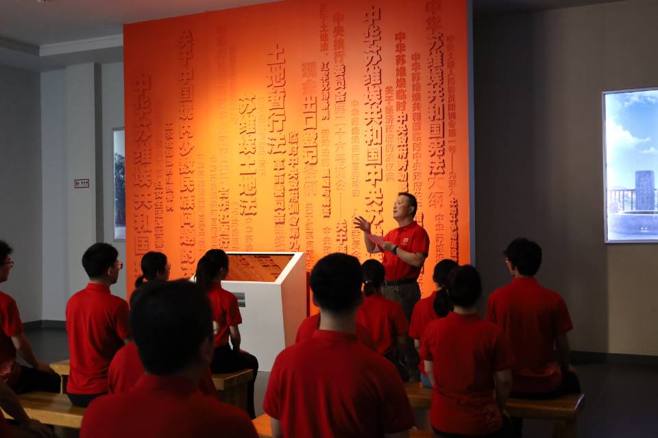 在中华苏维埃共和国制度史陈列馆,由胡宗山领誓,实践队全体师生党员面向党旗庄严宣誓,以铮铮誓言展现华师政治学人的马克思主义信仰、共产主义信念以及对党和人民的忠诚。
