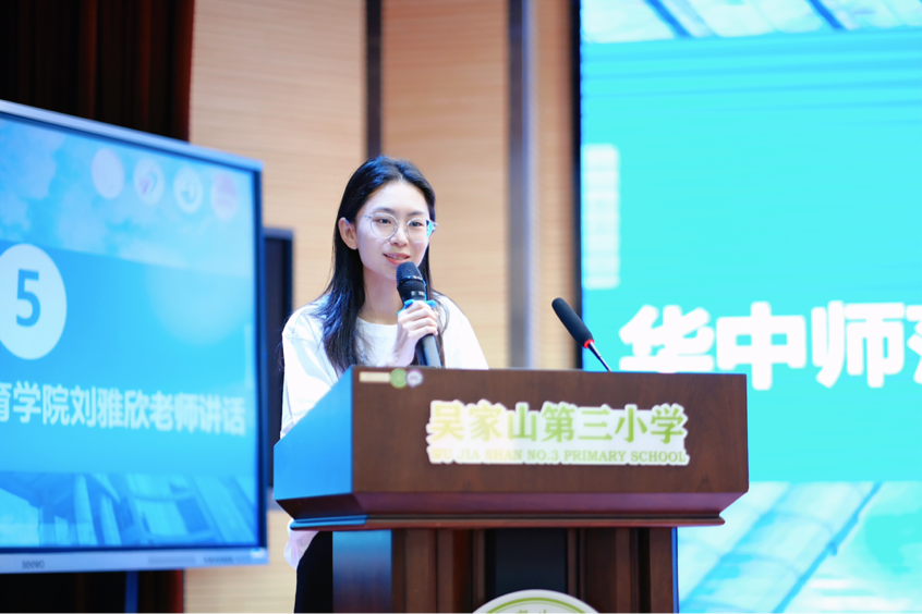 刘雅欣总结动员时表示,在实践前期筹备中,吴家山第三小学的师生们在助力学院发展、辅导学生成长、强化院校沟通等方面不惜余力,给予了许多支持与帮助。今年正值华中师范大学建校120周年,她希望同学们在暑期社会实践中牢记“为党育人、为国育才”的教育重任,践行“青春服务、志愿担当”的青年诺言,让“爱在华师”的精神滋养吴家山第三小学同学们的纯洁心灵。