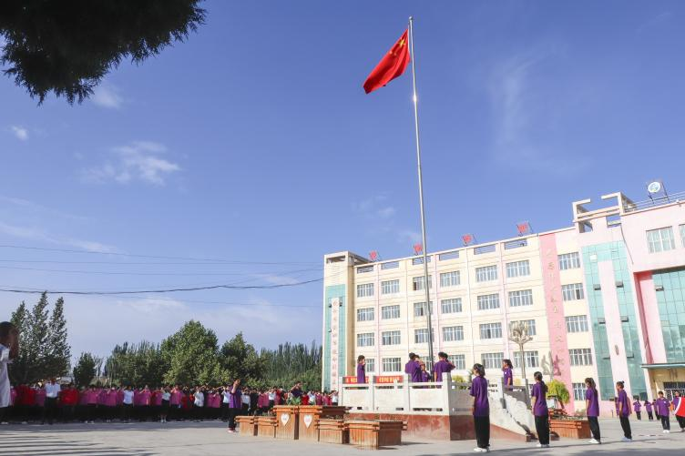 “丝路·逐梦”社会实践队及红柳中学全校师生参加升旗仪式