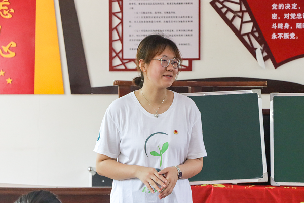 大会上,苑洪玉介绍外院青禾实践队队伍情况。本次实践队分为支教组、调研组与宣传组,在百丈河村进行为期一周的实践。实践队员们将以课堂传授、入户调研等方式在社会课堂上磨练自身、服务社会,同时通过举办“普通话推普周”“乡风文明大讲堂”“乡村集市”等特色活动丰富本次实践内容。