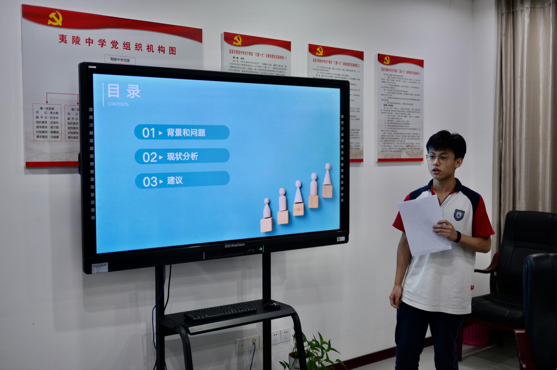 7月10日,经过缜密筹备,夷陵中学第一届模拟政协提案大赛决赛举行。夷陵中学政治教师马桓、实践队指导老师郑泓韬与实践队队员邱锐受邀担任大赛评委。本次大赛共有5份优秀提案脱颖而出,进入决赛的角逐。