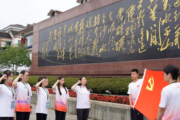 “战士双脚走天下,四渡赤水出奇兵。”裸眼3D纪录片重现了毛主席在红军长征战略转移的点睛之作。习近平总书记在参观会址时对令长征从被动转为主动、从挫折走向胜利的四渡赤水之战做出评价:“毛主席用兵如神!真是运动战的典范。”参观完毕后,实践队党员同志们面向党旗,重温入党誓词,宣誓声铿锵有力、字字千钧,见证着实践队员的初心使命。