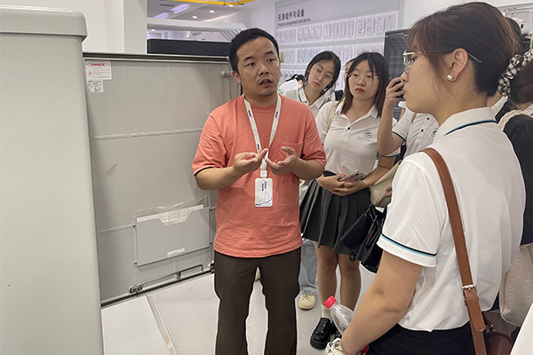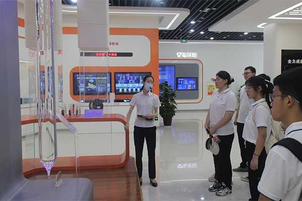 随后,实践团成员们前往参观烽火集团旗下通信产品、服务器和光纤光缆的生产基地。在工作人员细致讲解下,实践队成员体验了光纤、光棒、服务器等设备元件的加工制造全流程。在产品生产、装配、质检,和包装环节,随处可见机械臂、空中轨道、5G+AI质检机器等高度工业智能化场景和5G技术的广泛应用。实践队员袁坤表示:“走进企业,不仅能够近距离地了解行业发展和技术原理,还能切身体会到企业精益求精、不懈奋斗的精神,让我受益匪浅。”