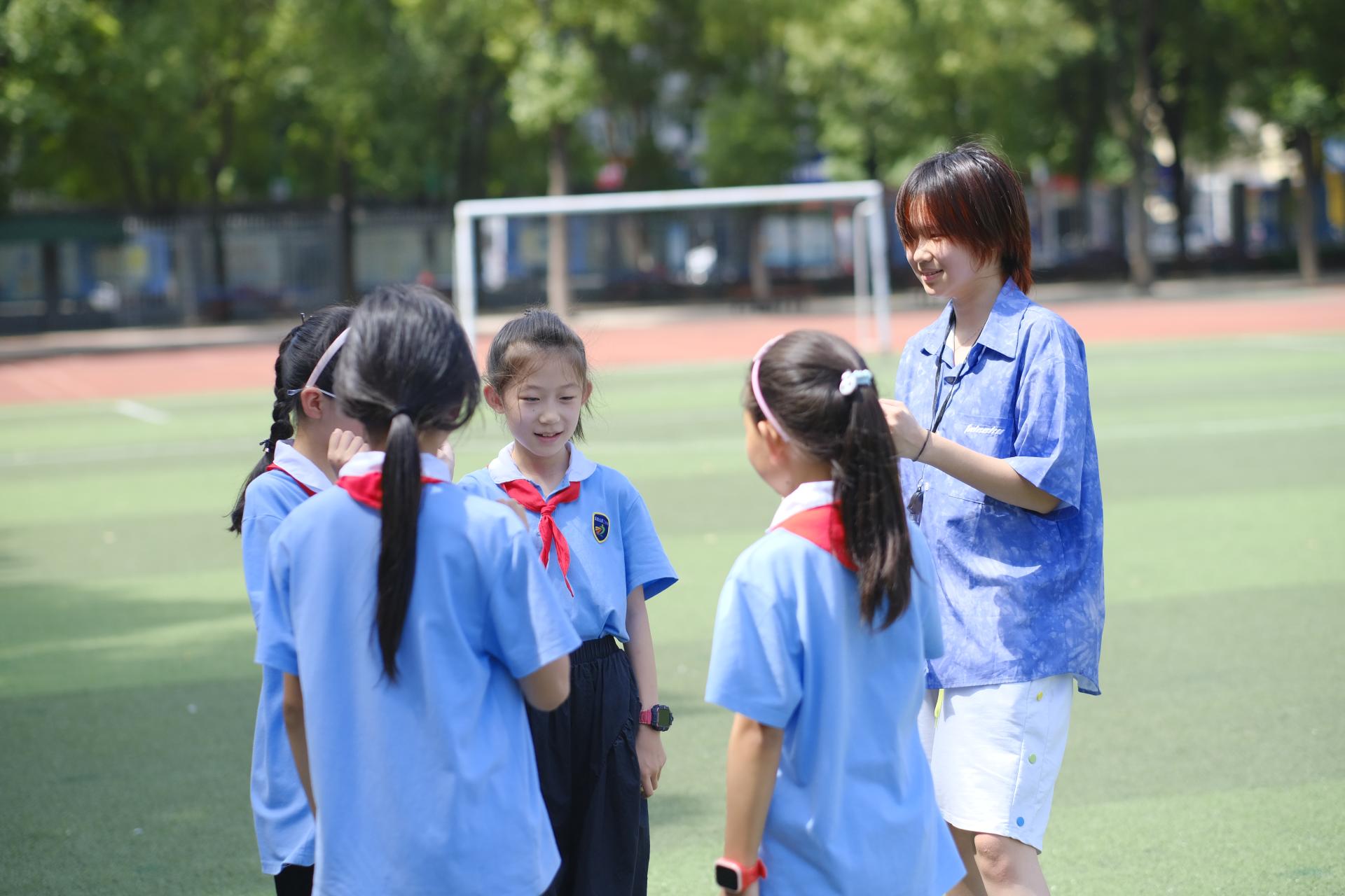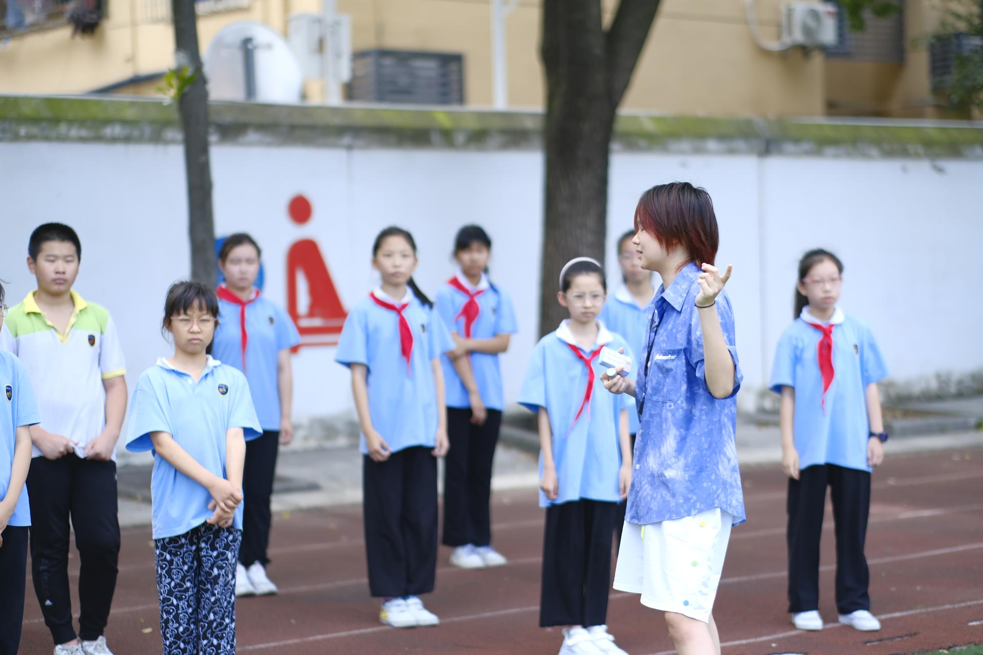 华大青年讯(通讯员 杜涵超 高建瓴)为进一步促进少年儿童德智体美劳全面发展,努力培养有志向、有梦想,爱学习、爱劳动,懂感恩、懂友善,敢创新、敢奋斗的新时代好儿童,7月6日,华中师范大学雏鹰实践队(以下简称“雏鹰实践队”)在武汉市吴家山第三小学开展趣味运动会,23名队员和吴家山第三小学70余名学生参加活动。实践队员饶梦涵担任运动会裁判。