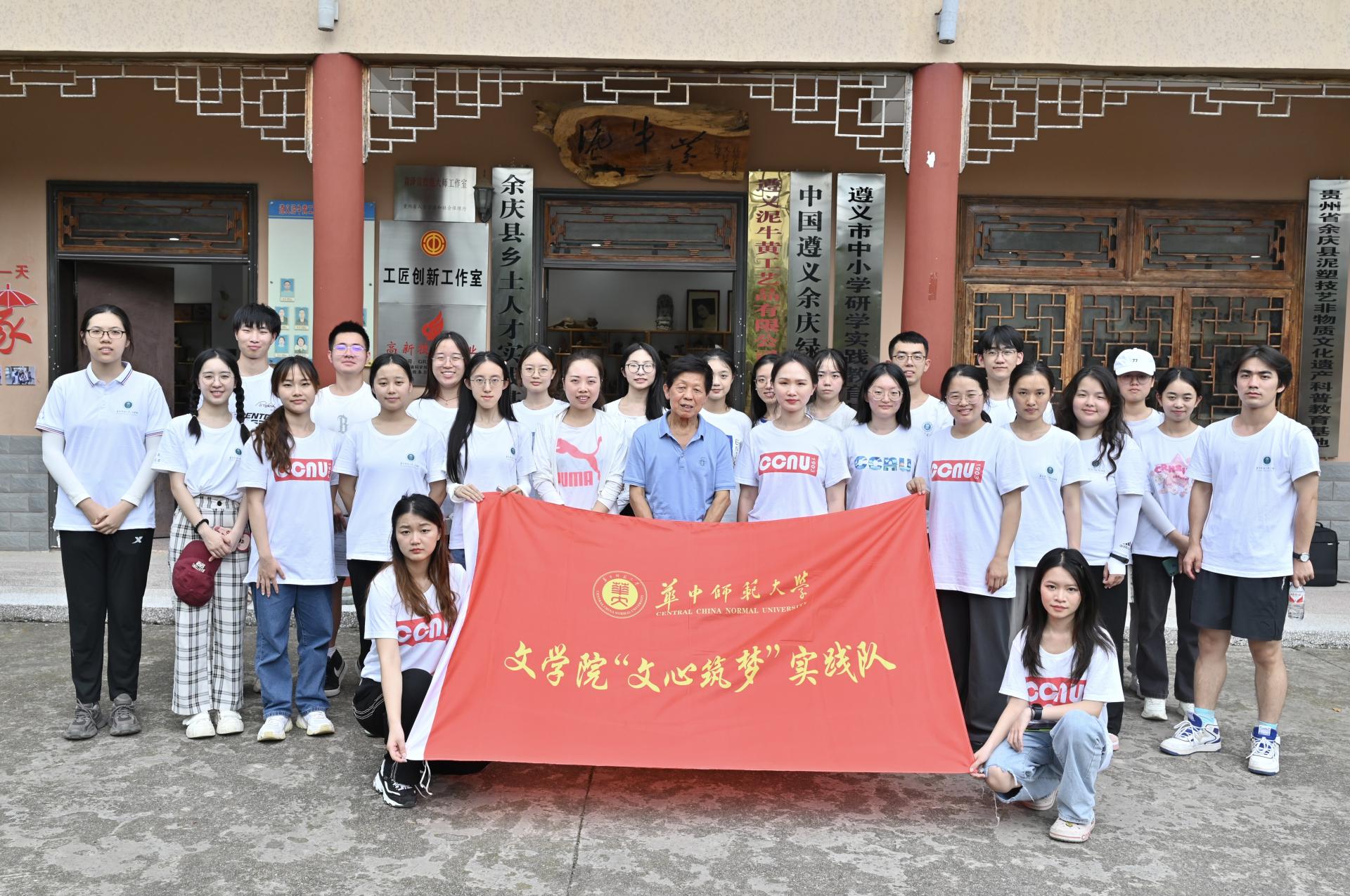 华大青年讯(通讯员 于清屹 杨佩情 岑宛芳)为深入贯彻落实党的二十大精神,切实助力乡村振兴战略,探寻民族地区,传承非遗文化,7月11日,文学院“文心筑梦”实践队(下文简称“实践队”)赴贵州省余庆县飞龙湖以及遵义泥牛黄工艺品有限公司开展非物质文化遗产传承与推广普通话调研,文学院团委书记倪菁参与本次活动。