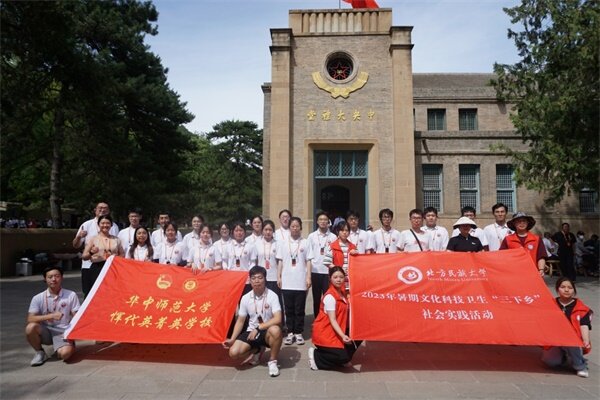 华大青年讯(通讯员 冯海依 王梓桐 王庄奕)为追寻红色印记,在实践中重温延安精神,7月10日,华中师范大学青马红迹实践队与学生社团指导中心来到延安,前往延安革命纪念馆、杨家岭、枣园、延安红街以及梁家河参观学习。全体成员重温先辈革命与生产建设足迹,聆听红色故事,瞻仰革命圣地,弘扬奋斗精神。