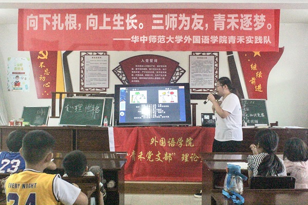 华大青年讯(通讯员 杨津 谢绮敏 宁子晴)7月1日起,外国语学院青禾实践队百丈河分队前往英山县百丈河村开启为期近两周的社会实践。期间,在实践队带队老师、寻光心理工作室指导老师徐圆的带领下,联合寻光心理工作室、心理学院研究生、青禾实践队等共同设计制作情绪和性格心理主题课程。