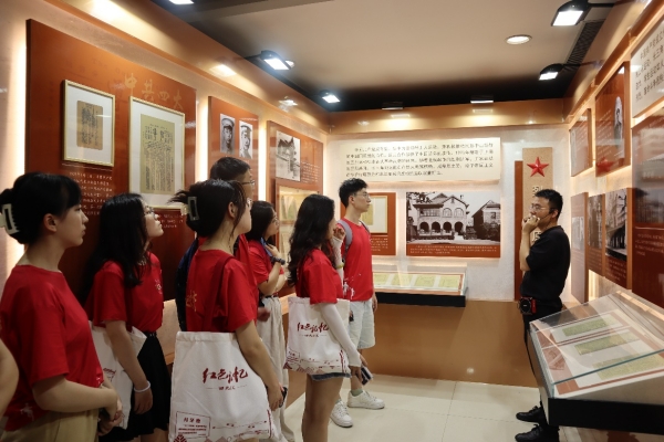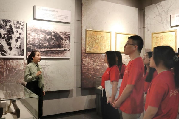 7月12日上午,红色档案探寻队来到了位于阜阳市颍泉区的四九起义纪念馆,在纪念碑前重温入党诗词,缓步绕行纪念碑一圈。队员们在馆长邵琦的带领下参观历史场馆、聆听红色故事。邵琦讲述了四九起义的背景和经过,并就自己的体悟与探寻队成员进行了深入的交流。邵琦表示,作为纪念馆的讲解员,26年的坚守让自己与这段红色的故事建立起了深厚的感情,并在未来也将以身作则、坚守岗位,做好红色精神的传承者、红色净土的守护者。在场师生对于革命精神的传承有了更深刻的体悟。