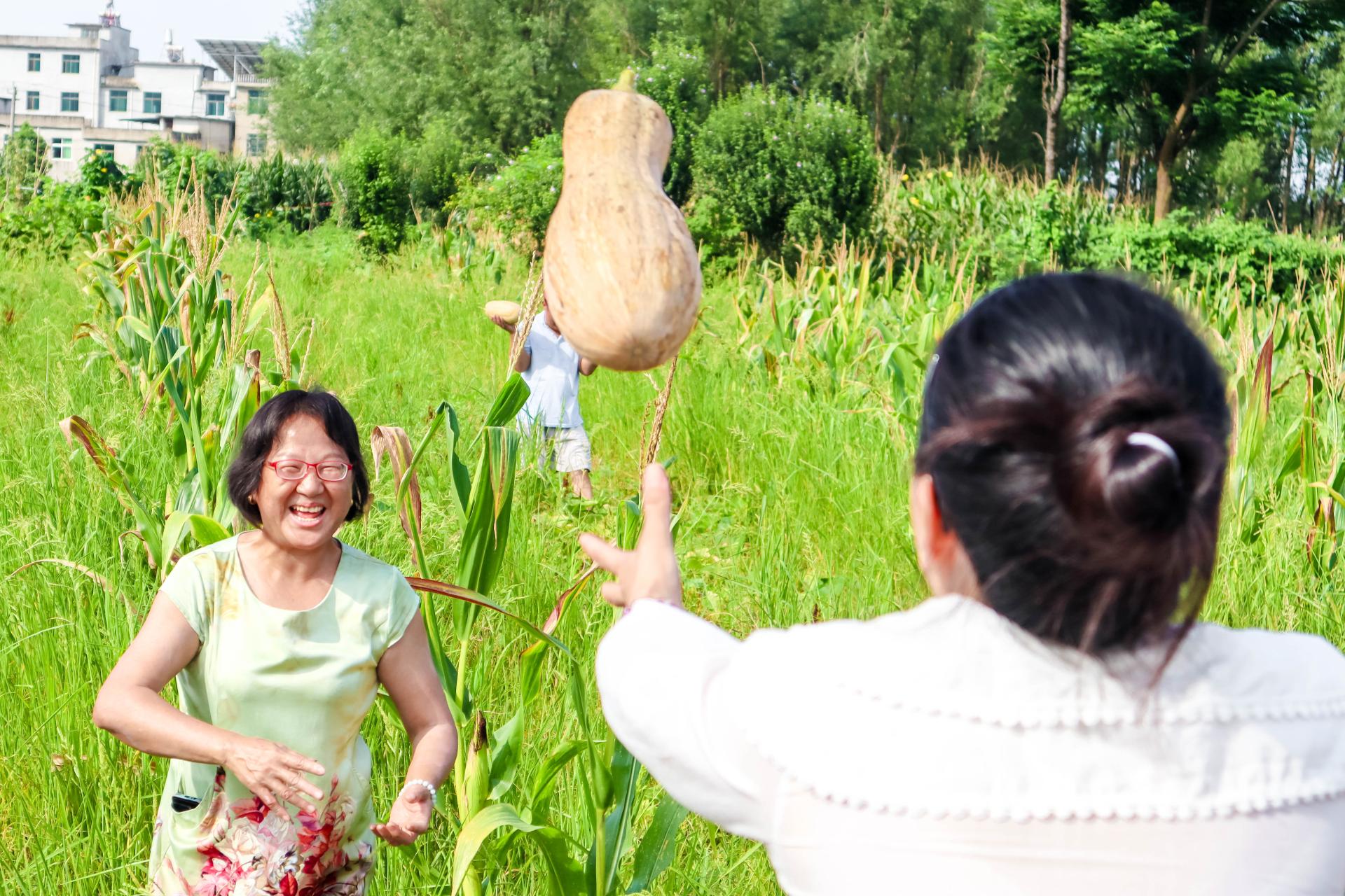 在三溪村党支部书记、村委会主任饶冠军的带领下,志愿者老师和村干部们先一步到达南瓜田开展抢收工作。他们分工协作,各司其职,有序进行采摘、搬运、装车、卸货等环节。负责采摘的志愿者下田地采摘南瓜,再由搬运志愿者以“接力棒”的形式完成搬运。烈日高照,天气炎热,但志愿者们劳作的热情不减。