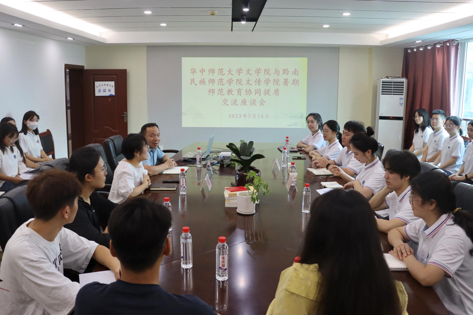华大青年讯(通讯员 杨佩情 胡沁秾 岑宛芳)教育大计,教师为本。为深入贯彻落实习近平总书记关于教育的重要论述,落实《中共中央国务院关于全面深化新时代教师队伍建设改革的意见》,推进实施新时代基础教育强师计划。7月10日至7月13日,文学院“文心筑梦”实践队(下文简称“实践队”)于贵州省黔南布依族苗族自治州都匀市黔南民族师范学院和遵义市遵义师范学院开展“协同提质师范教育”三校交流活动。文学院副教授陈蓓,团委书记倪菁,22级辅导员崔宏博参与本次活动。