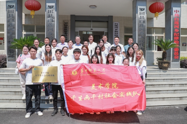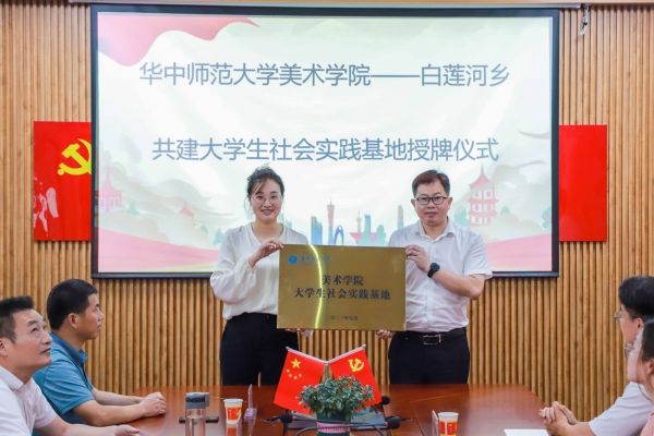 华大青年讯(通讯员 张栌丹)7月14日上午,华中师范大学美术学院与白莲河乡共建大学生社会实践基地授牌仪式在白莲河乡乡政府举行。白莲河示范区党工委委员、管委会副主任万物春、白莲河乡党委书记涂新海、华中师范大学美术学院党委副书记刘倩出席,美术学院“千生画千村”社会实践队黄冈分队全体师生参加。