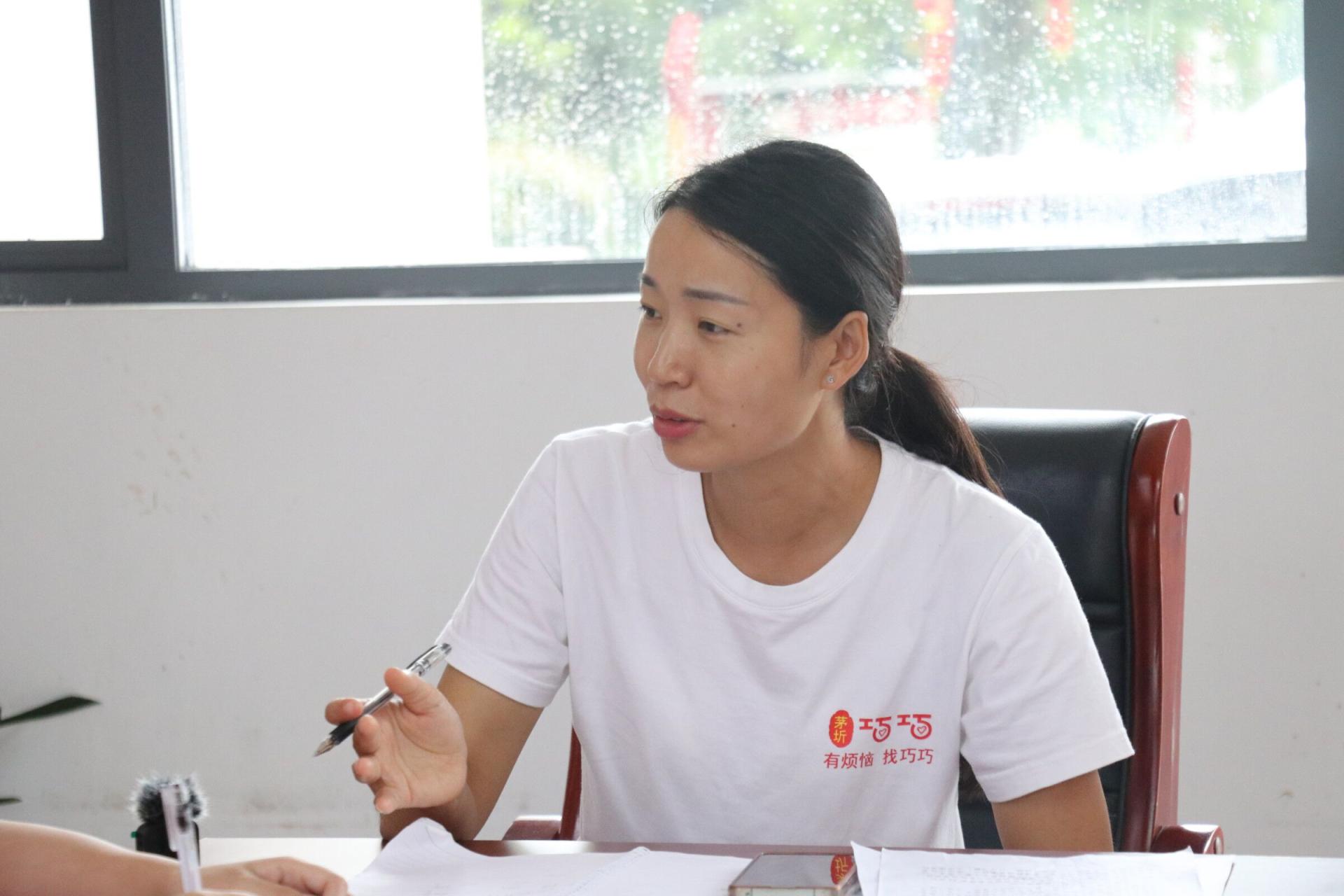 7月11日下午,实践队对全国优秀团干、“巧巧工作室”的发起人、茅圻村村支部委员余巧进行了深度访谈。在访谈过程中,余巧详细介绍了工作室的成立和发展过程、工作室的总体架构和运行模式。听了余巧的介绍,实践队员们对“巧巧工作室”的基层社会治理工作经验有了更深刻的认识。