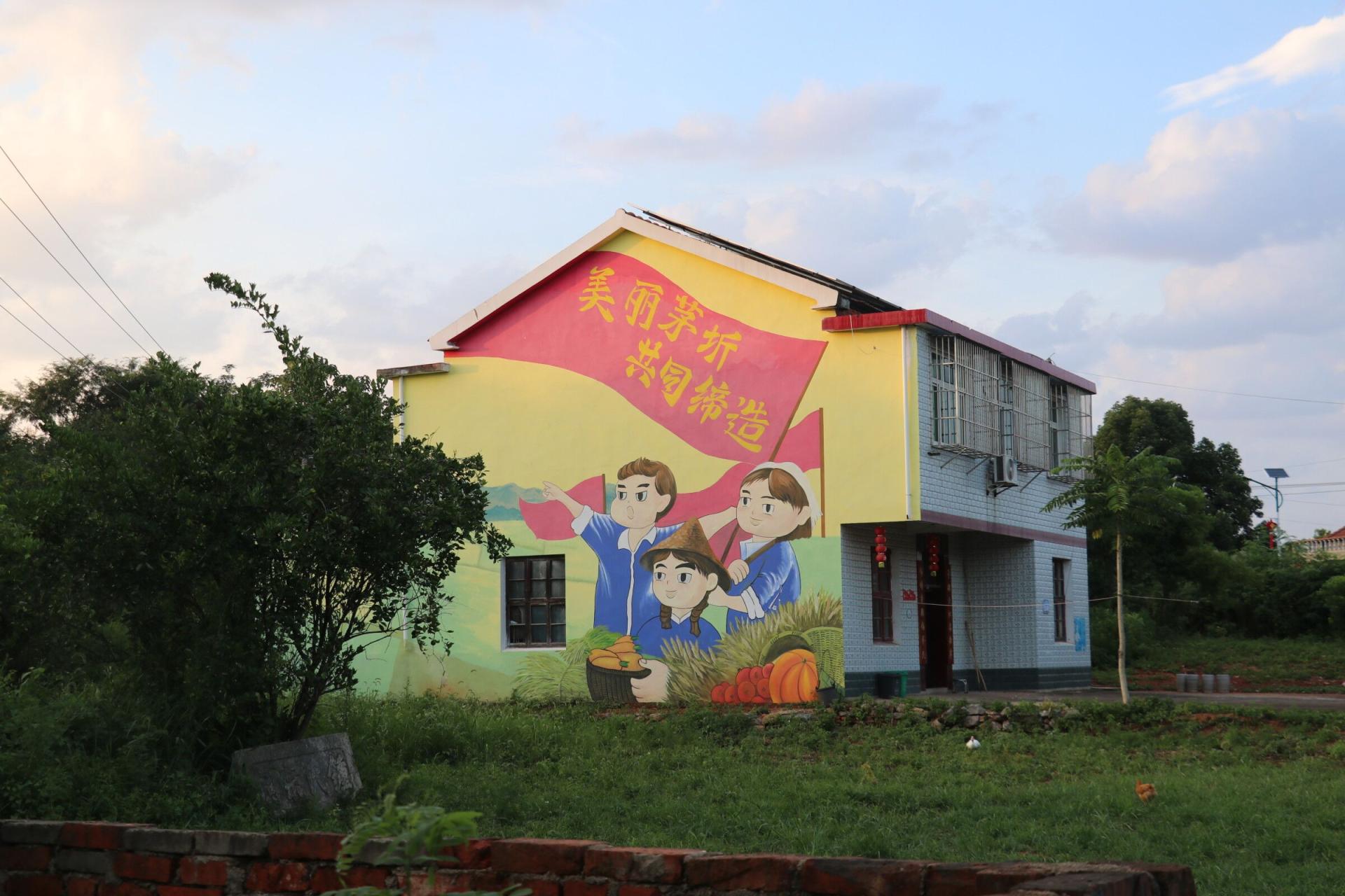 在走访过程中,队员们还发现,茅圻村村容村貌干净整洁,房屋铮明瓦亮,水塘清澈干净,房屋外墙上“共同缔造”“党建引领”“垃圾分类”等宣传画与绿树蓝天融为一体,构成一幅幅美丽的乡村画卷。余巧介绍,茅圻村十分重视乡村文明建设,让爱国、爱党、爱家乡的文明乡风的思想深入人心。加强农村精神文明建设,对村集体的各项工作开展奠定了良好的基础。