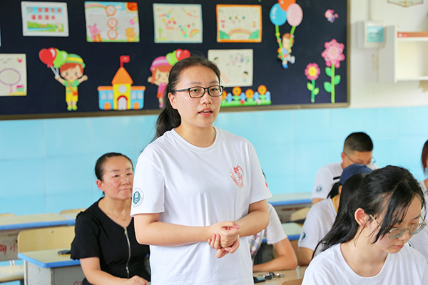 基于一线教师教学经验,刘晓琳分享了班主任管理经历,针对学生的心理健康、考勤等问题,她提到要切实将班级管理问题落到实处,确定合理可行的班规,用心搭建起与学生沟通的桥梁。此外,她建议支教队选出各班班主任,加强家校沟通。她鼓励实践队队员将此次支教经历内化于心、外化于行、且教且研、不断进步,与孩子们共度充实假期。