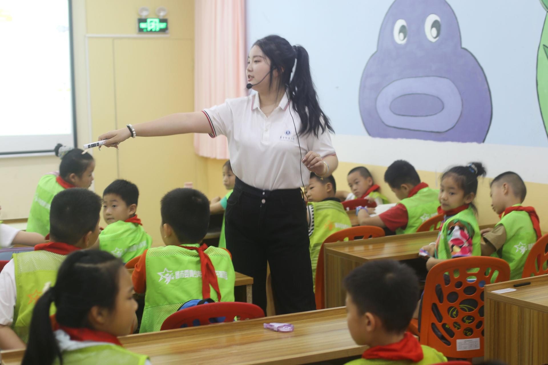 7月15日下午的课程是《图形化编程:打地鼠》。实践队成员农翠芹、王天天分别担任小班、大班主讲人。实践队员以学生们熟知的打地鼠游戏为例,教导学生学习如何建立设置变量、如何运用判断和循环语句,切实培养学生的编程思维。两位主讲人采取不同的授课模式,让不同年龄段的学生都能理解并掌握课程内容。农翠芹采用提问的方式引导小班学生逐步理解模块化程序的知识点,开拓学生思维方式,同时她在小班课堂实施分组积分的方式,充分调动学生参与课堂的积极性,活跃课堂气氛。王天天鼓励大班同学积极动手实践,在自我尝试的过程中不断学习,充分发挥同学们的创造性和积极性。课程中主讲人与学生积极互动,学生在踊跃发言、积极动手操作中学习到新的编程思想,感受到编程的魅力。