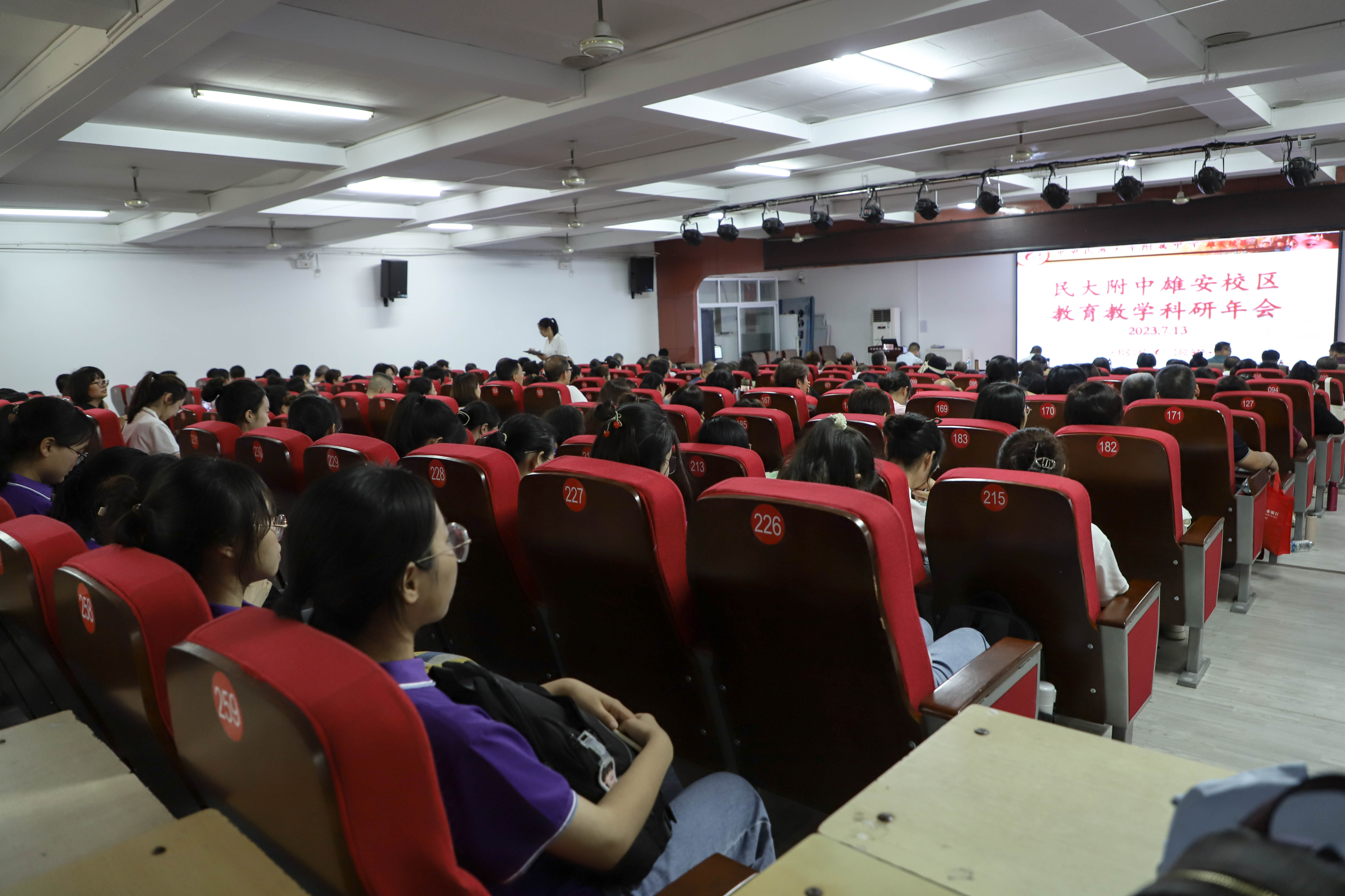 座谈结束后,蒋含丹又邀请实践队队员一同参加中央民大附属中学首届教育教学科研年会,了解新时代与新形势下的教学理念。蒋含丹就教师们在教科研工作方面作出的努力给予充分的肯定并进一步明确接下来的工作方向;北京二中校长陈鹏进一步根据新课标要求讲解如何在课程教学中运用大单元学习方法,并引申到各类学科开展大单元学习法的优点与必要性。最后,蒋含丹寄语实践队队员,希望大家能够珍惜青春时光,努力学习,为成为一名优秀人民教师而不懈奋斗,在青春赛道上跑出最好成绩。